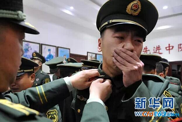 仪式上,这个站参谋长宣读了2014年度士兵复退命令,标志着这个站40余名老兵正式退出现役。在庄严的音乐声中,老兵们的警衔、领花、帽徽等被一一摘下,胸前戴上了象征着光荣退伍的大红花和复退纪念章。老兵们庄严承诺,一定用自己的汗水、行动,永远捍卫军人荣誉,为军旗增添光彩。随后,这个站举行了升旗仪式,老兵们用军礼表达了对警营的留恋与不舍,为军旅生涯画上了一个圆满的句号。